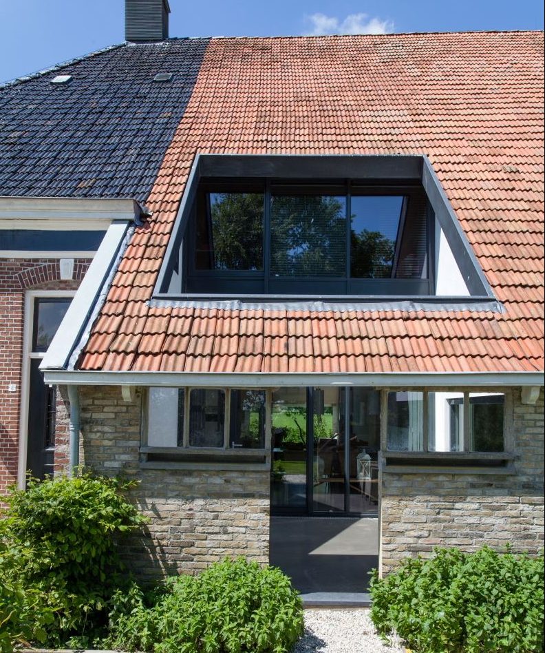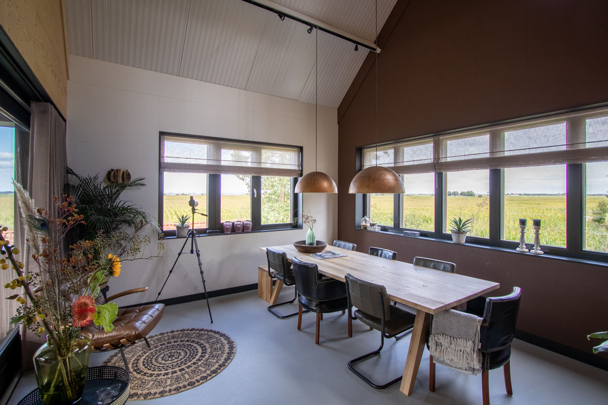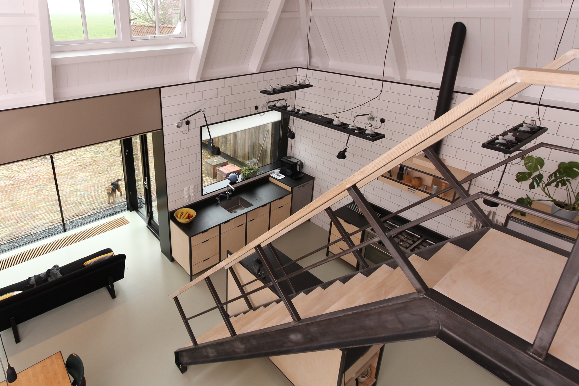 Verbouw, renovatie en restauratie van het totale interieur bij een boerderij in combinatie met een architectonische aanpassing van het dak, getekend door J.O.N.G. architecten uit Lemmer.