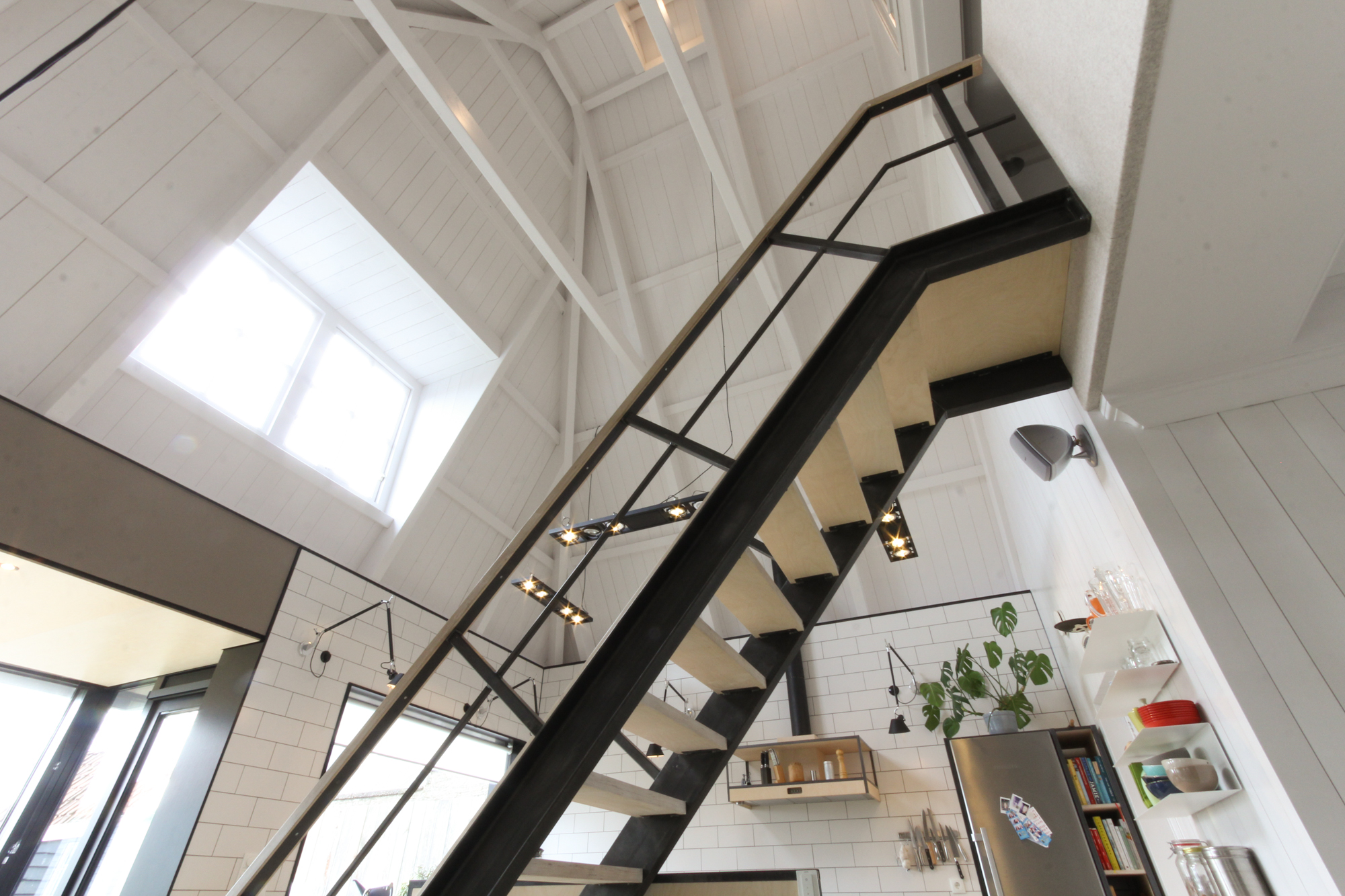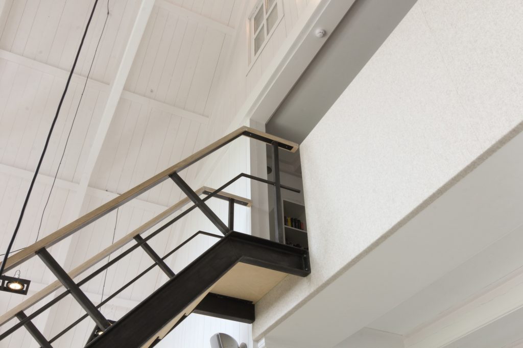 Deze monumentale woning te IJlst is uitgebreid met een moderne aanbouw op de begane grond en exterieure daklijn hersteld in oude stijl. Met als resultaat een spectaculaire afwerking in de dakconstructie aan de binnenzijde, waarbij de vide op de eerste etage is ontsloten door een robuuste stalen trap. Getekend door KAT Architecten in samenwerking met opdrachtgever.