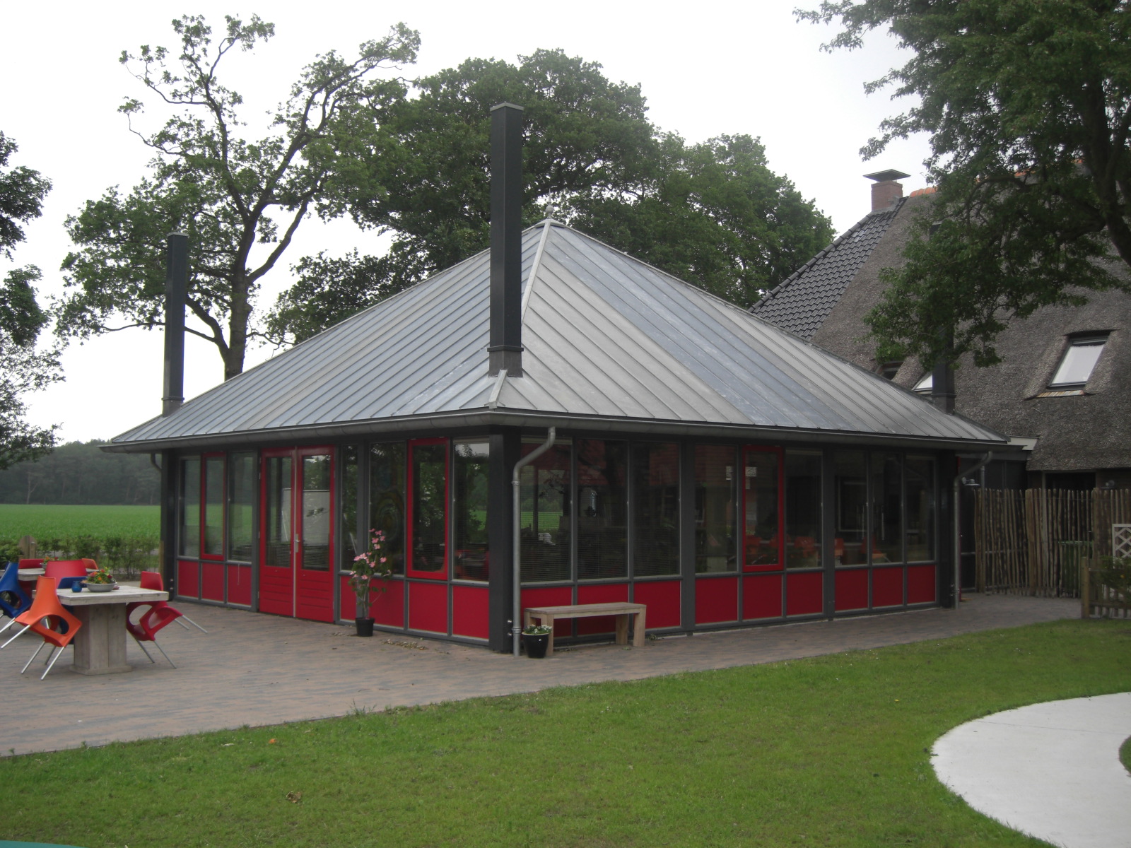 De bestaande boerderij is volledig gestript, gerenoveerd, verbouwd, uitgebreid en geschikt gemaakt voor diverse functies als wonen, logeren en dagbesteding waaronder een grote professionele keuken en een theeschenkerij. Achter op het landgoed zijn nog een atelier, werkplaats en paardenstal gerealiseerd.