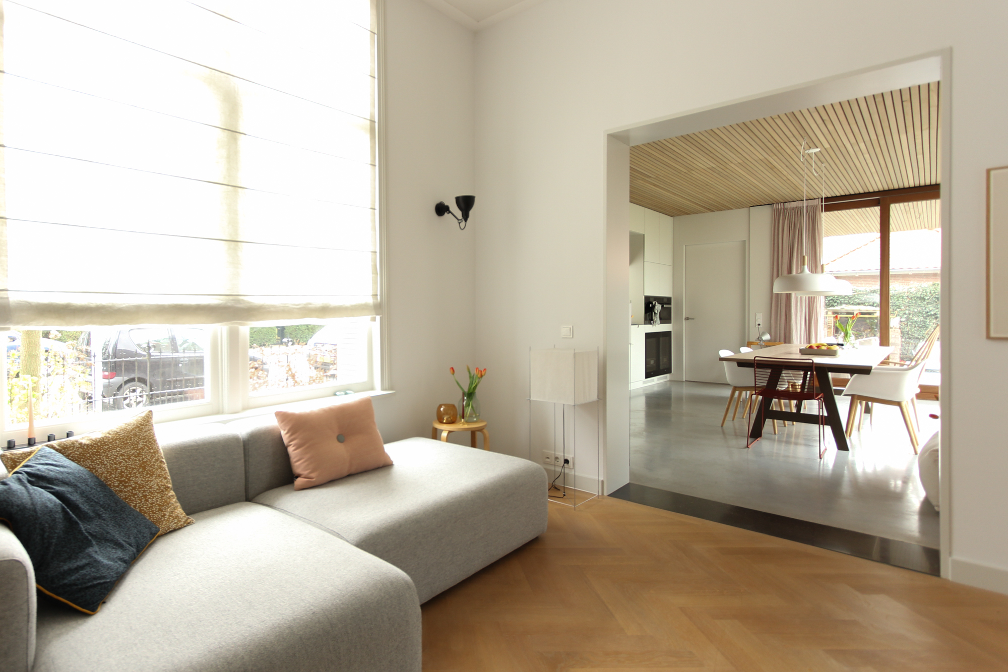 Vanaf de straatzijde is van de nieuwe ingrepen bijna niets te zien. De gevels zijn grotendeels in tact gebleven. Aan de tuinzijde is juist veel openheid gecreรซerd, waardoor vanuit de belangrijkste woonruimte contact is ontstaan met de tuin.